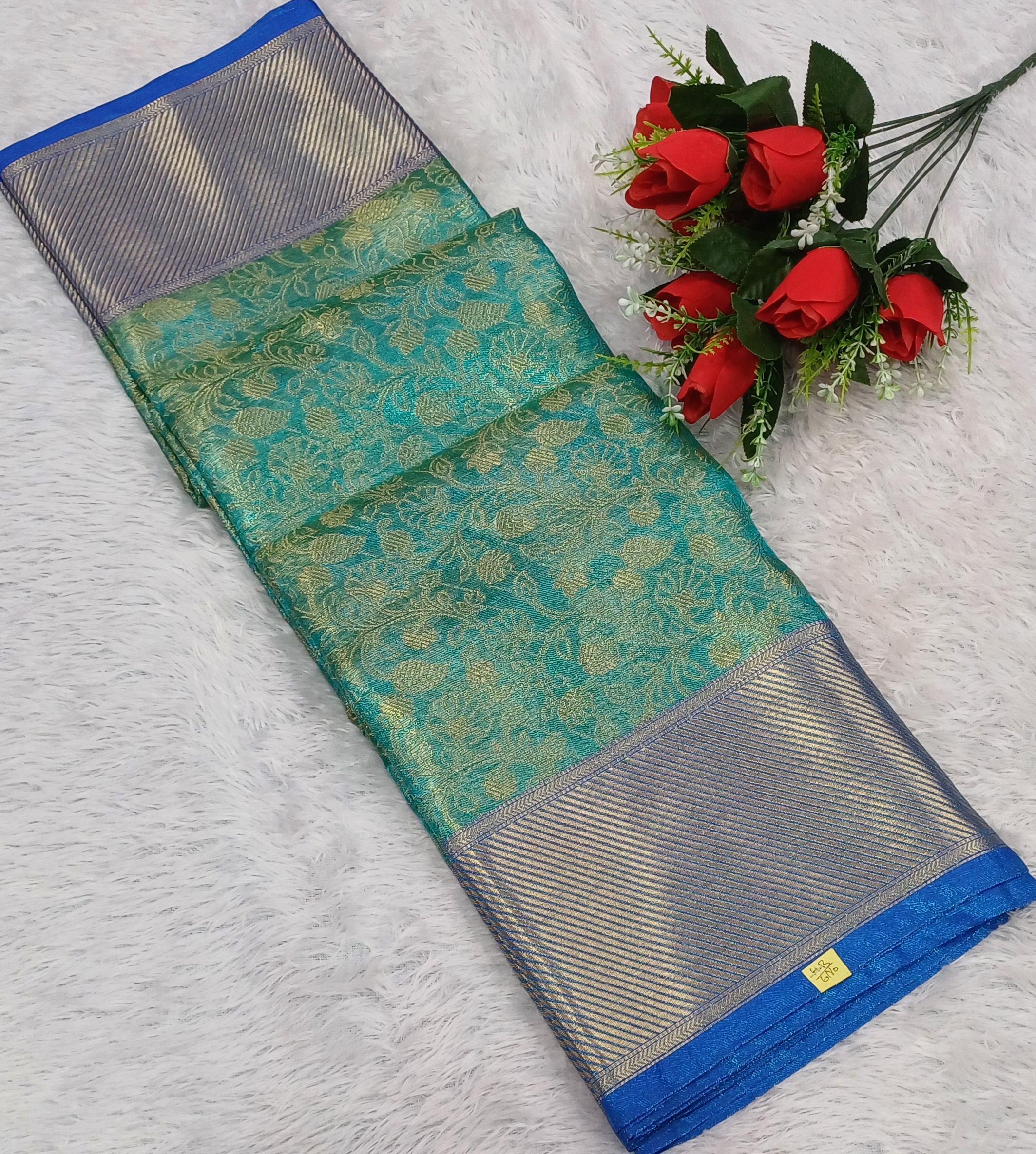 Tissue Silk Saree With Bloues & GOLD Zari Border