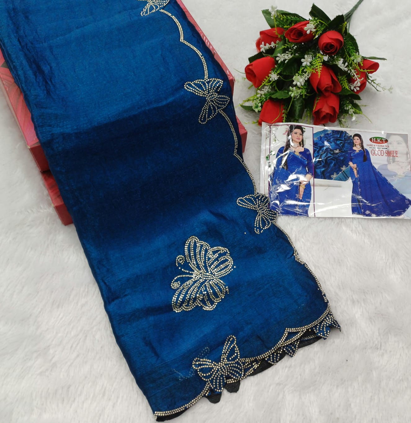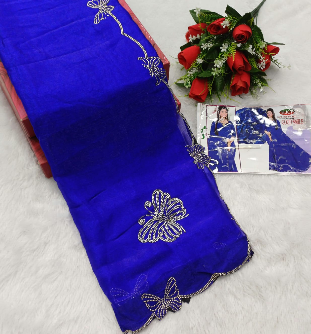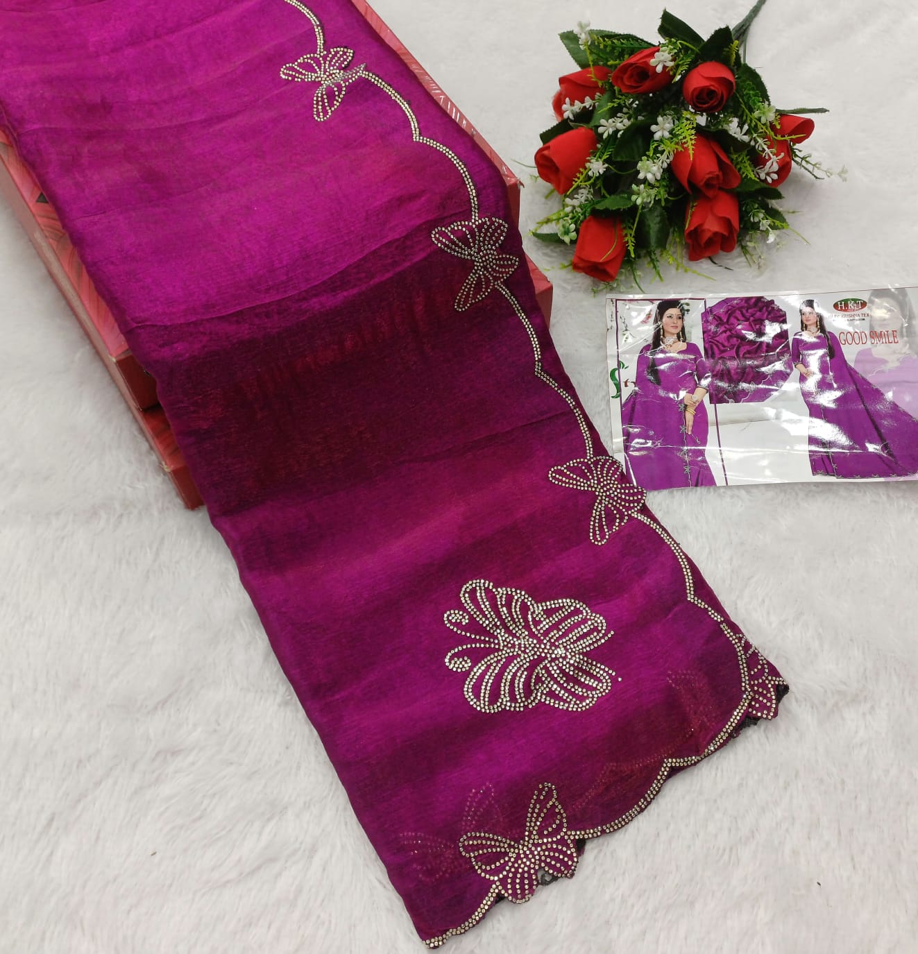 BUTTERFLY SPACE SILK SAREE STONE WORK BORDER WITH BLOUSE