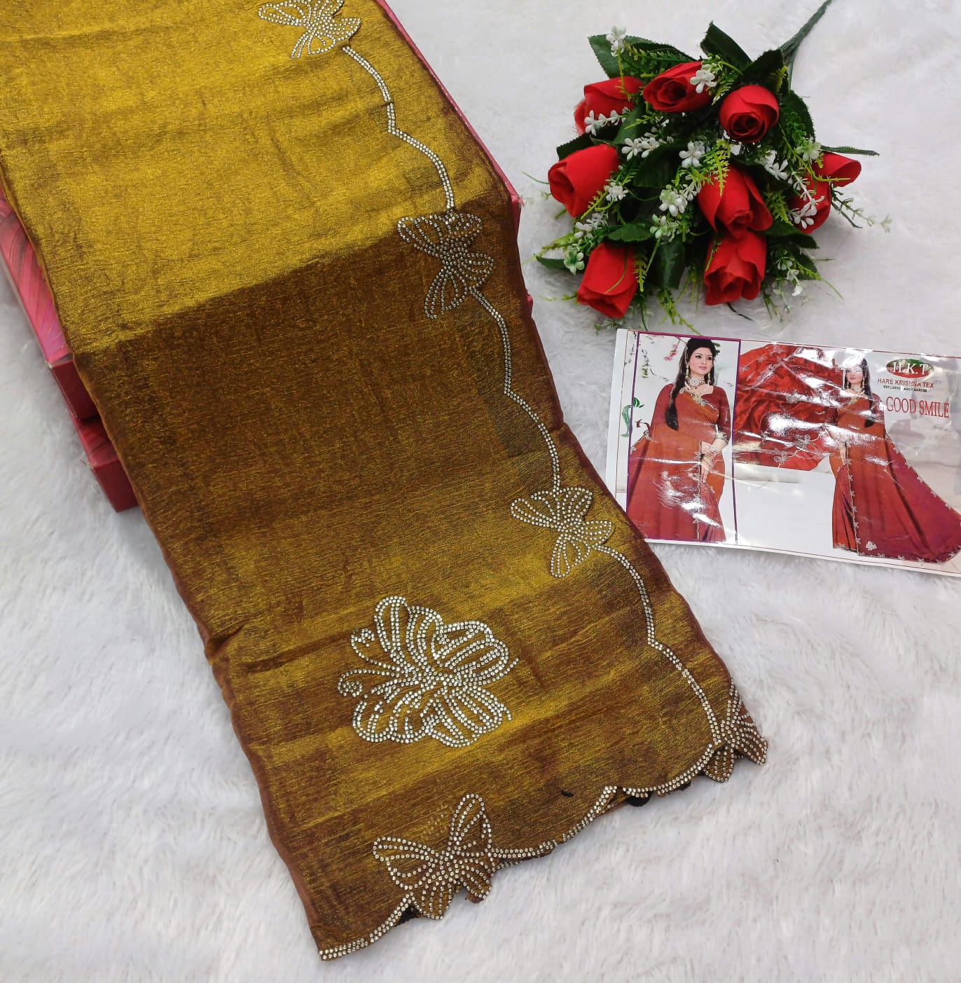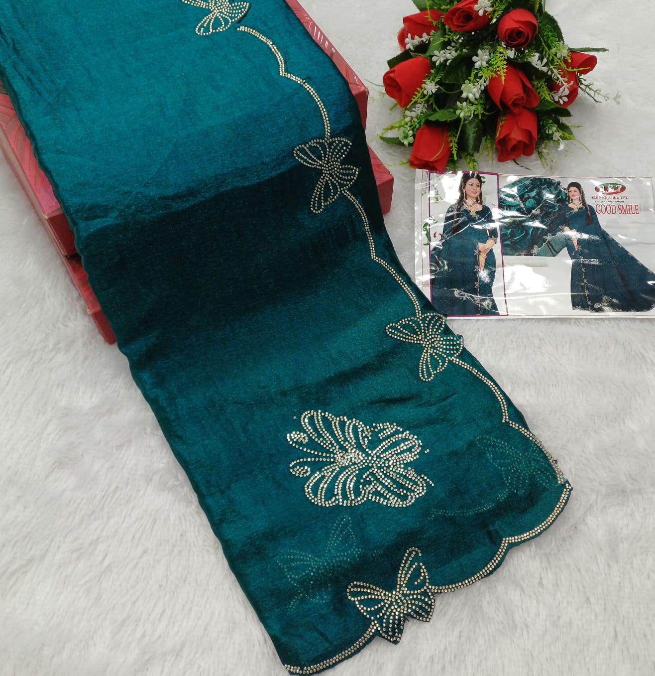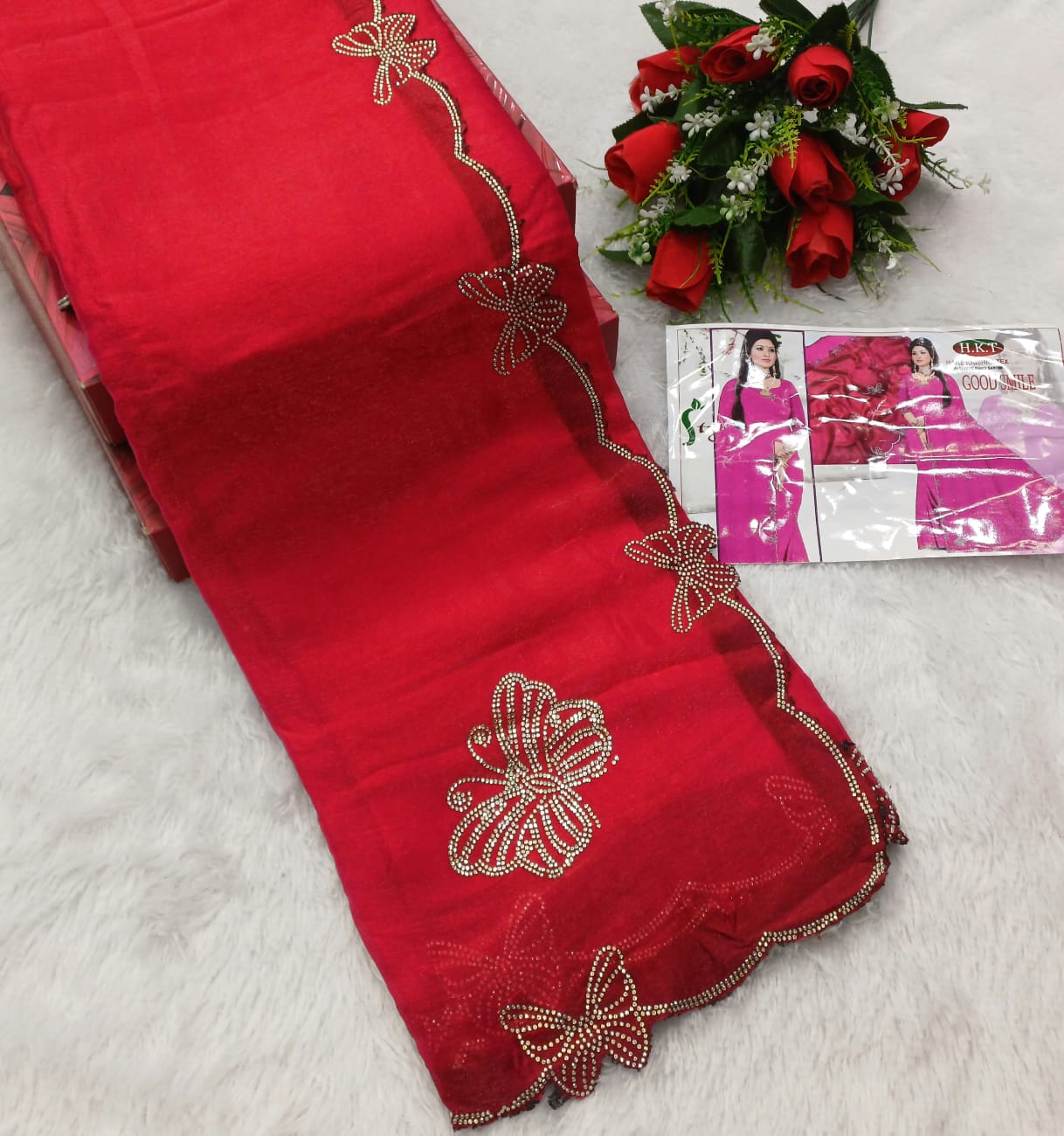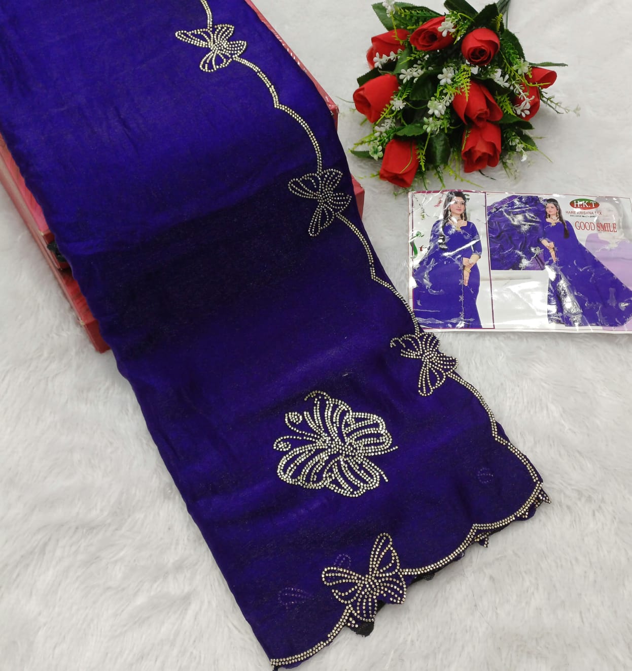 BUTTERFLY SPACE SILK SAREE STONE WORK BORDER WITH BLOUSE
