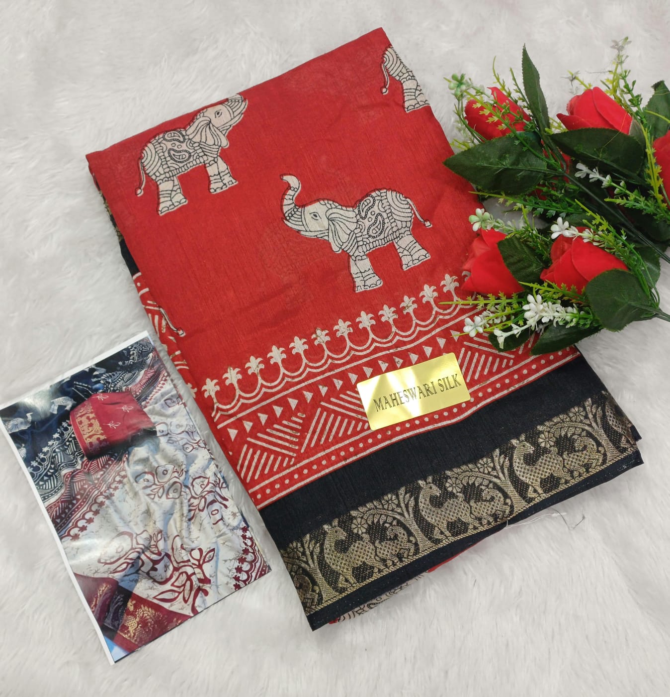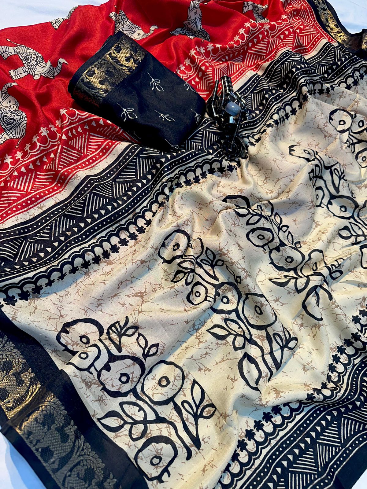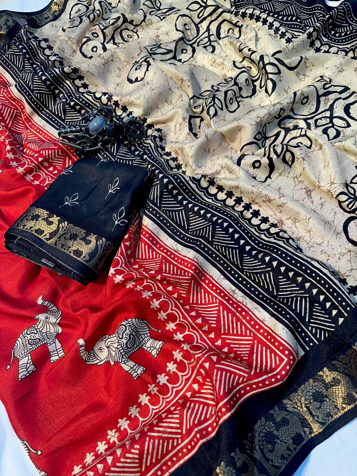 KALMKARI ELEPHANT DESIGN & RED AND BLACK COLOUR COMBINATION