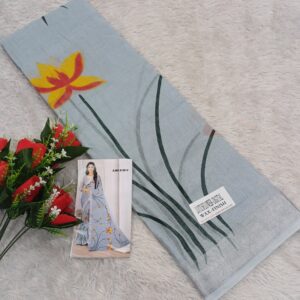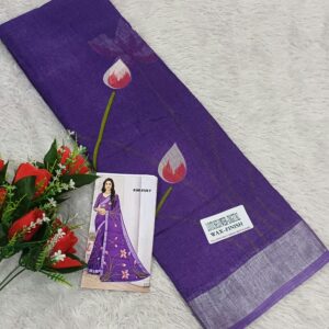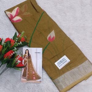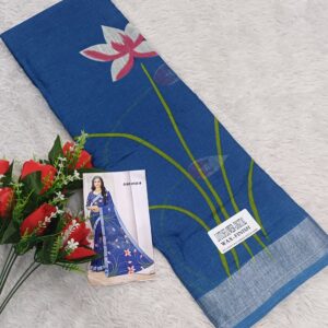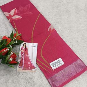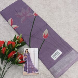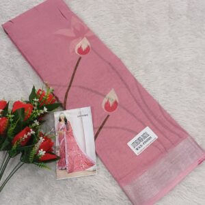 LENIN COTTON / PREMIUM QUALITY / LOTUS FLORAL DIGITAL PRINT & SILVER ZARI BORDER WITH BLOUSE