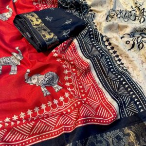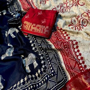 KALAMIKARI SOFT SILK & CONTRAST BORDER WITH BLOUSE