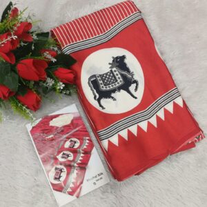 SOFT EASY TO WEAR MODHAL SILK SAREE & AJRAKH PRINT & GOMATHA DESIGN BORDER WITH BLOUSE / PREMIUM QUALITY /