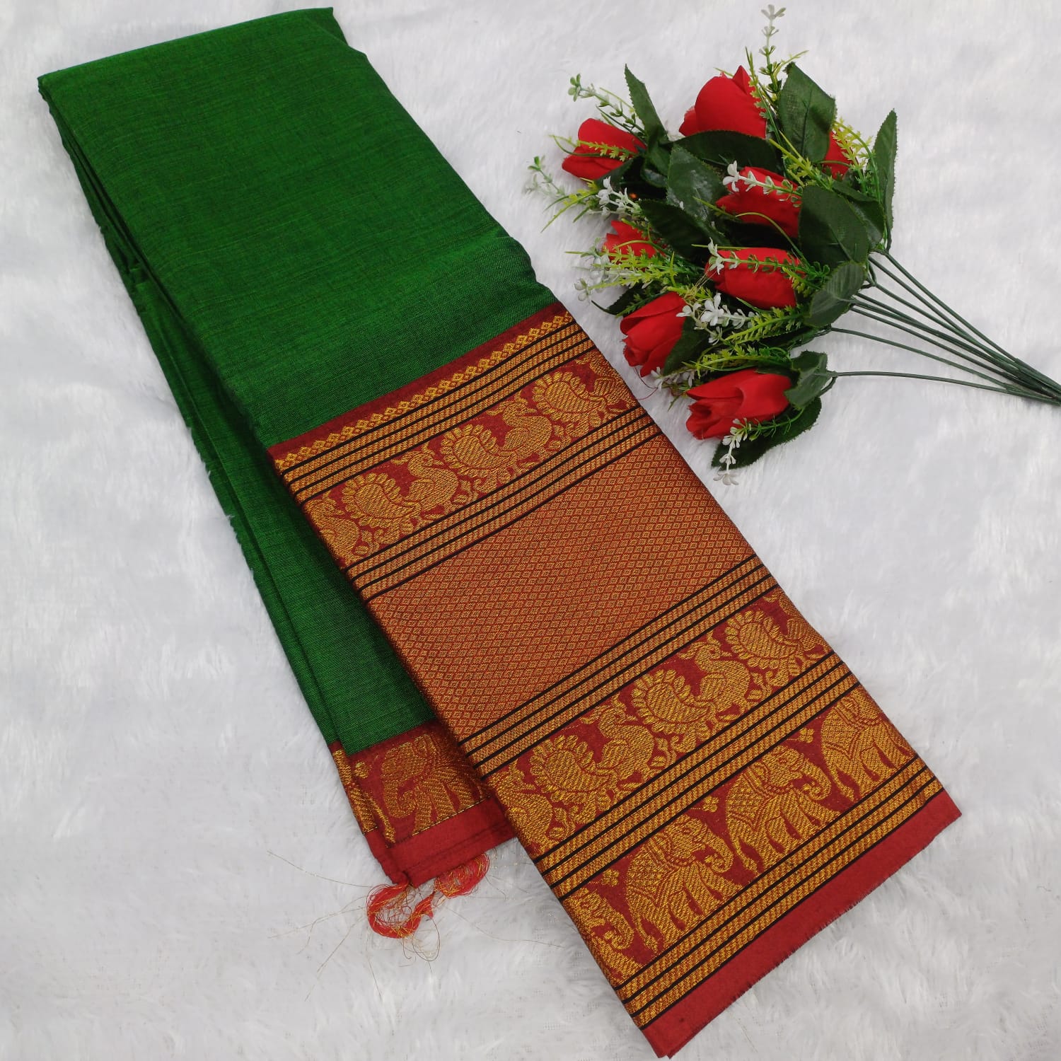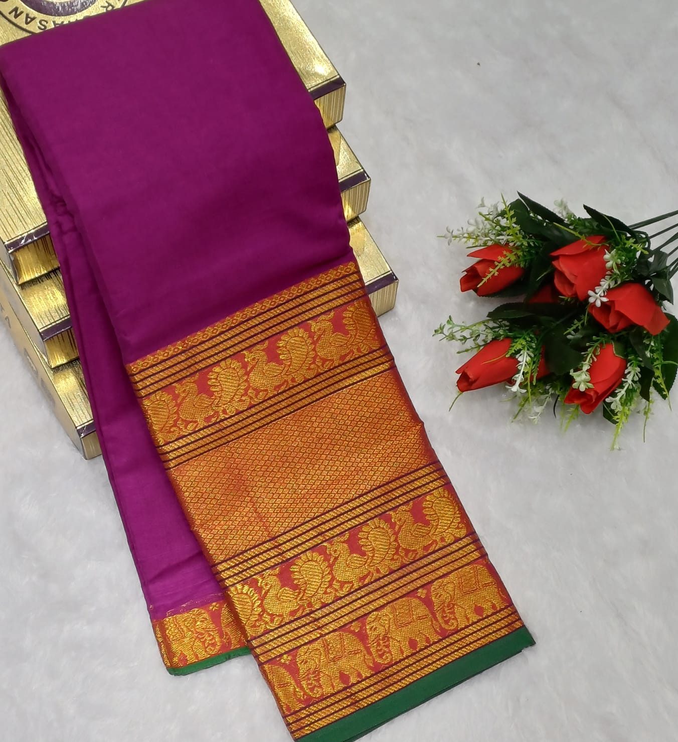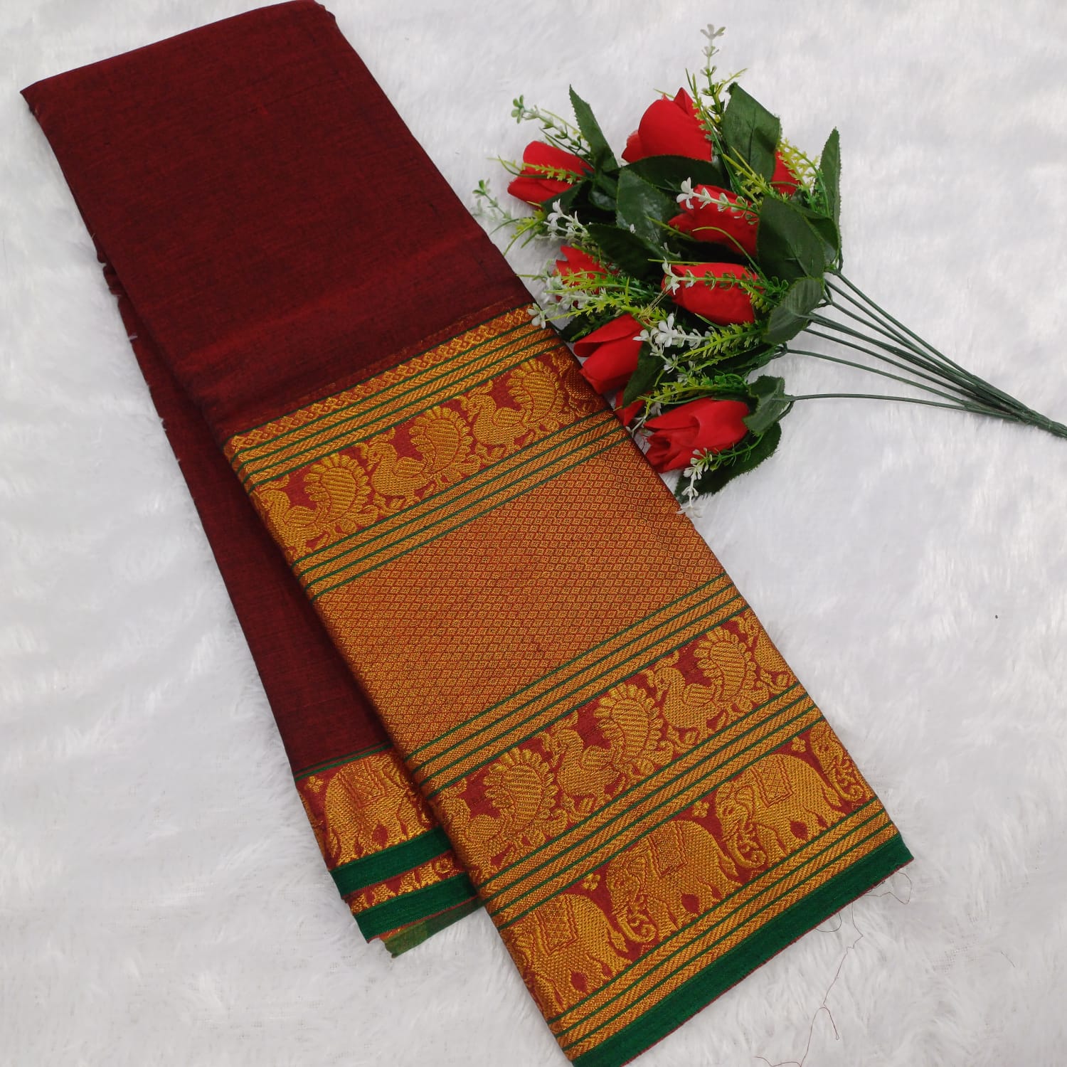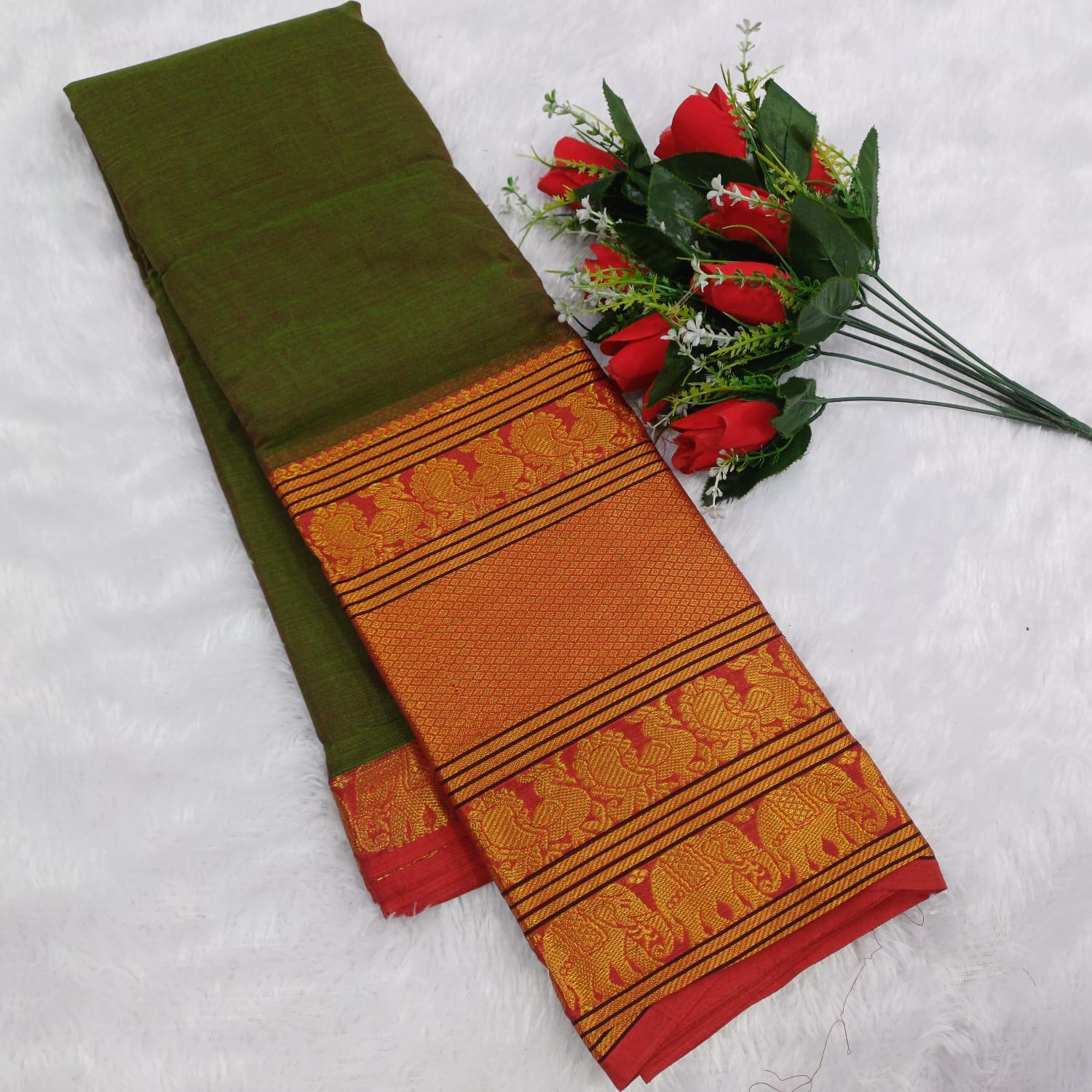 NARAYANPET COTTON SILK SAREE WITH BLOUSE & GOLD ZARI BORDER