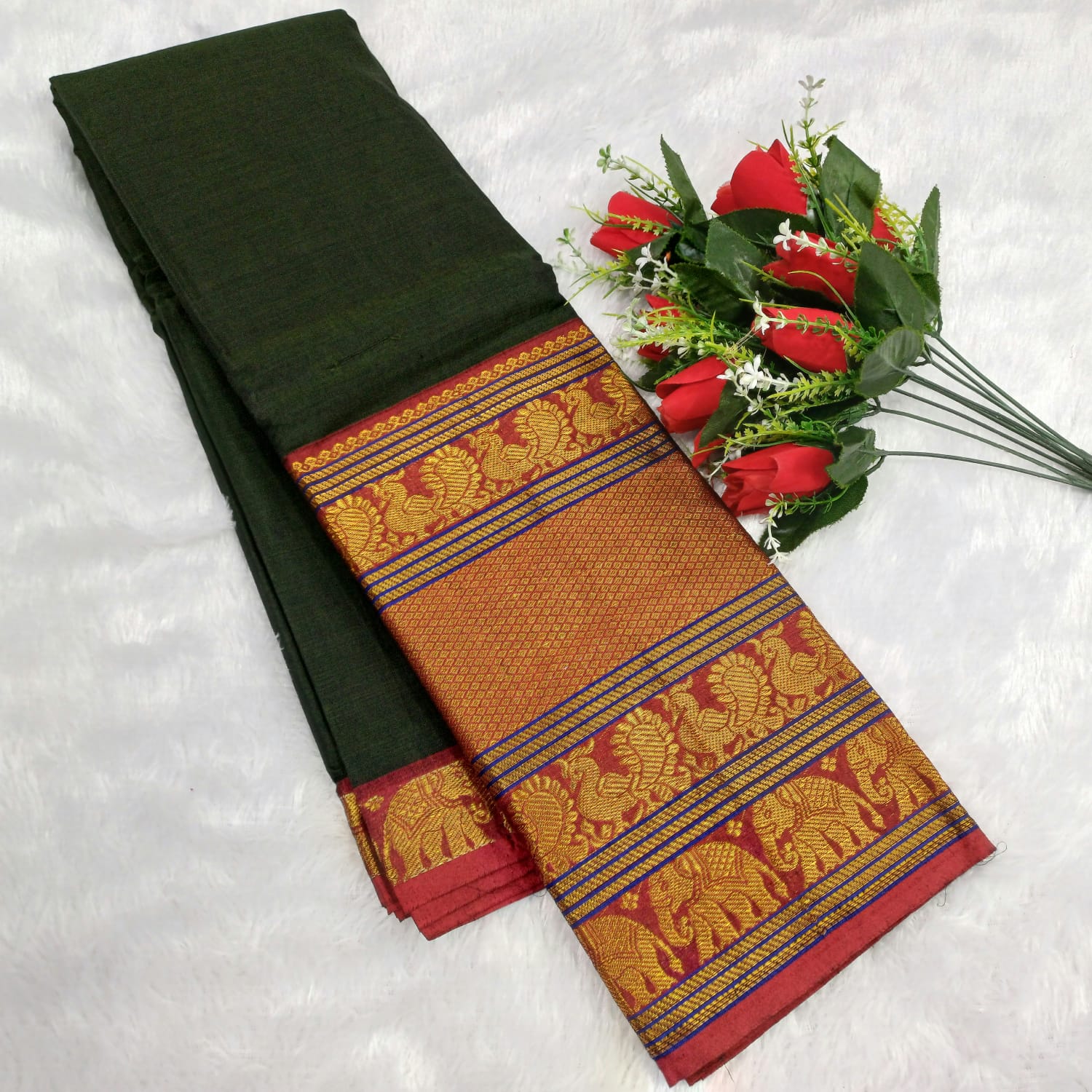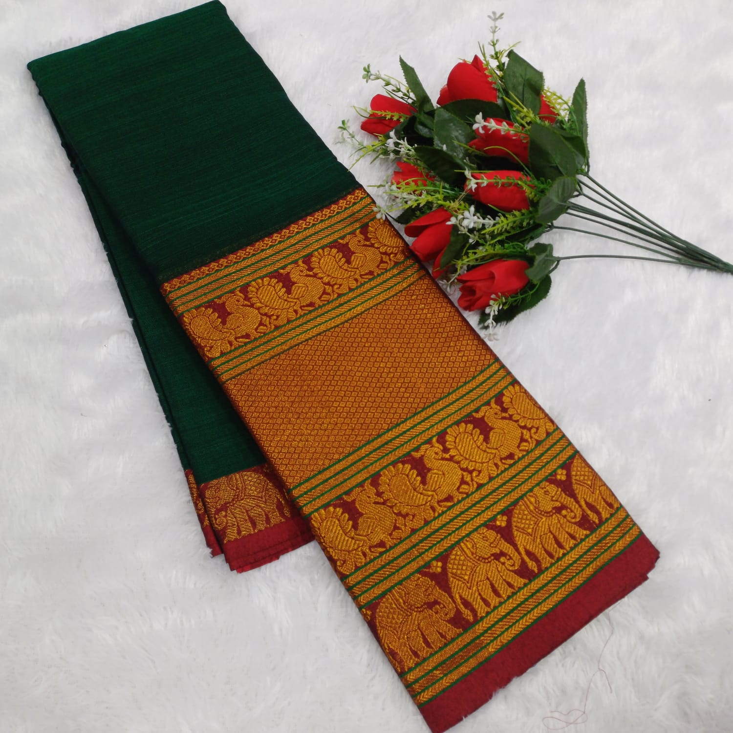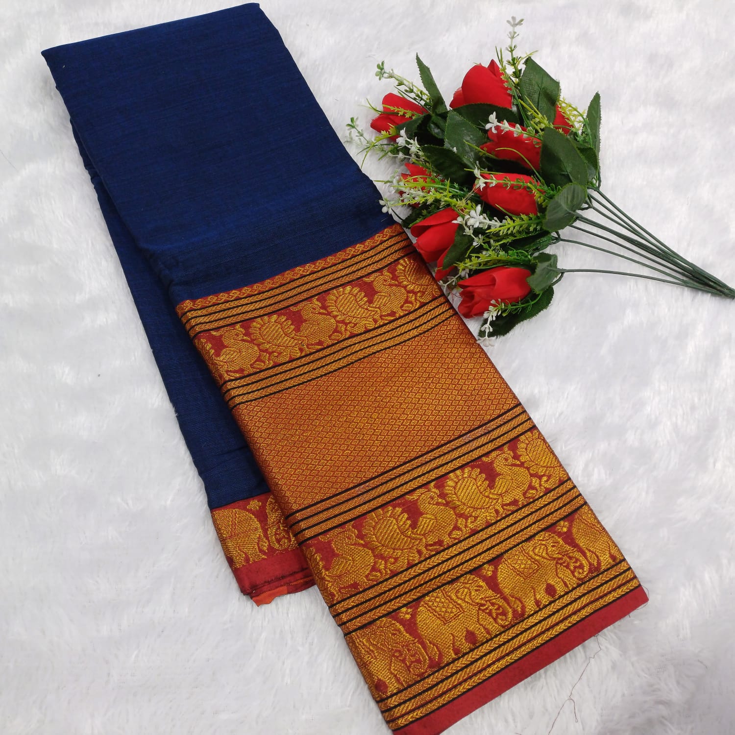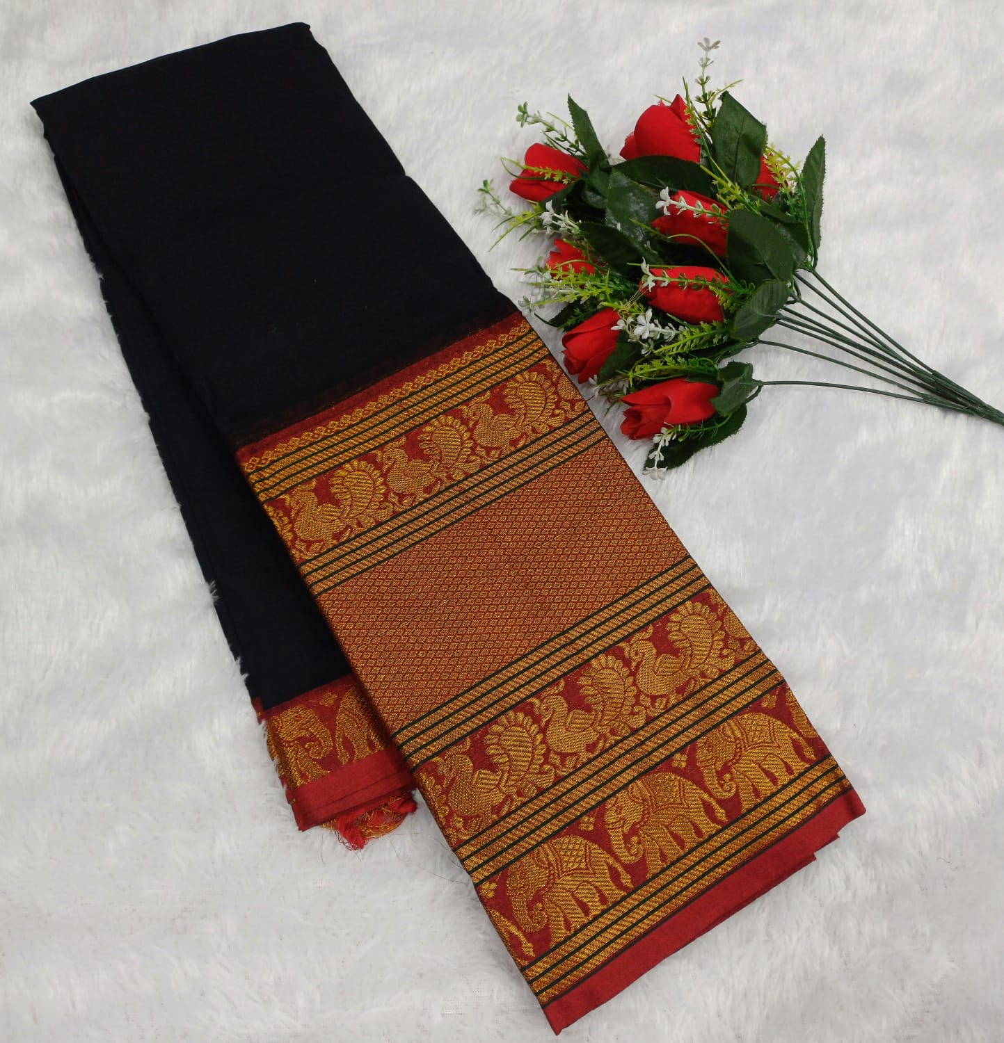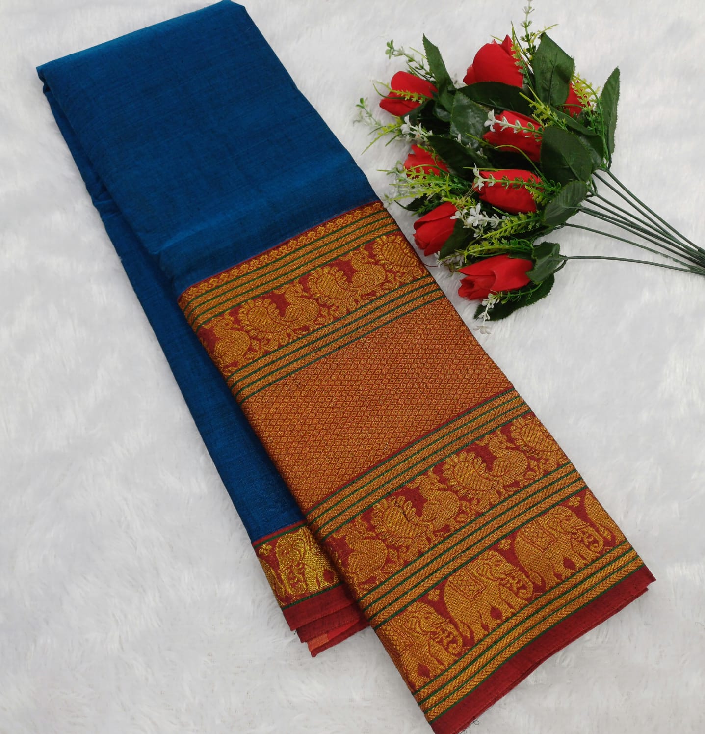NARAYANPET COTTON SILK SAREE WITH BLOUSE & GOLD ZARI BORDER