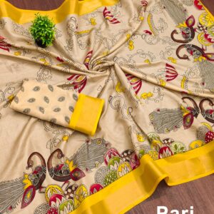 PREMIUEM QULITY SAREE BOUTIQUE STYLE GOLD ZARI BORDER WITH BLOUSE