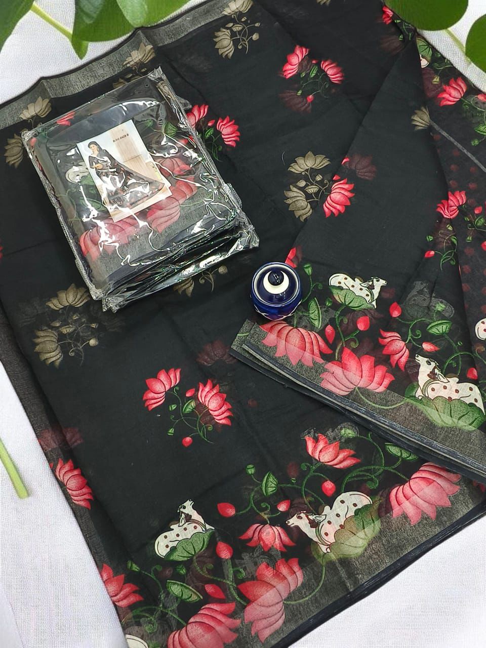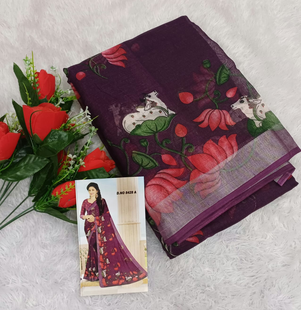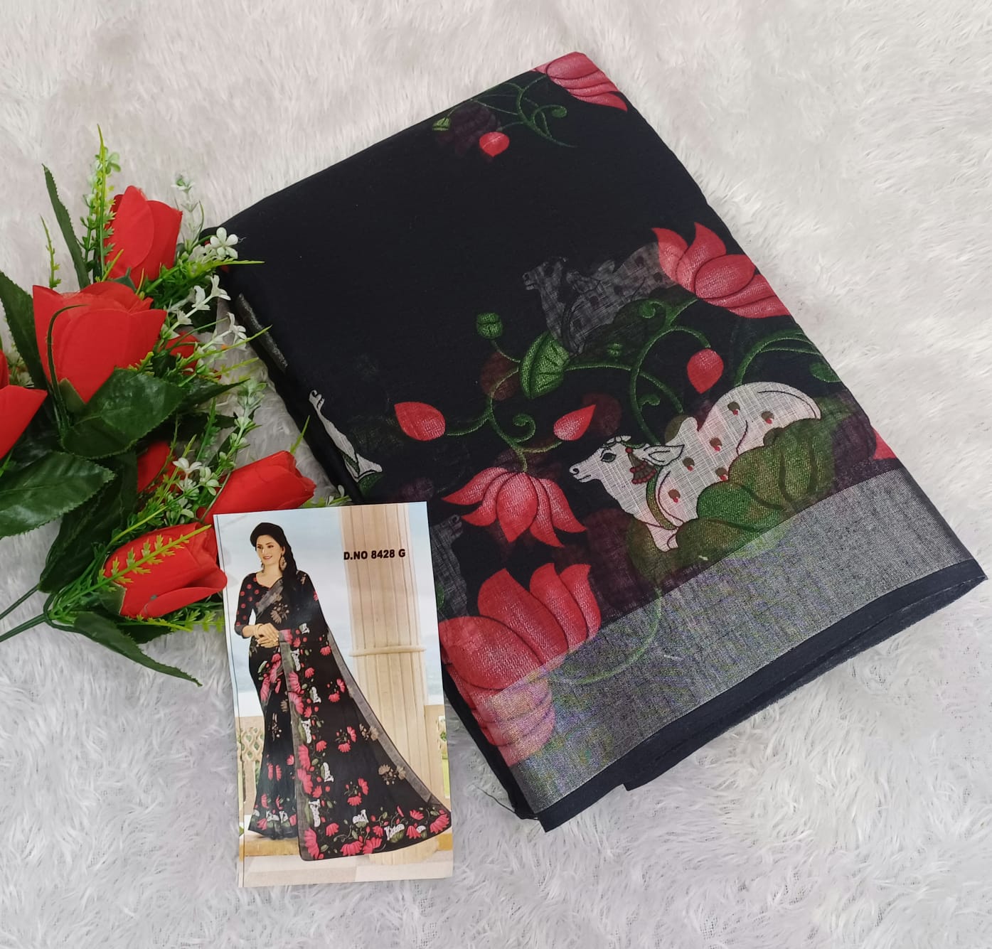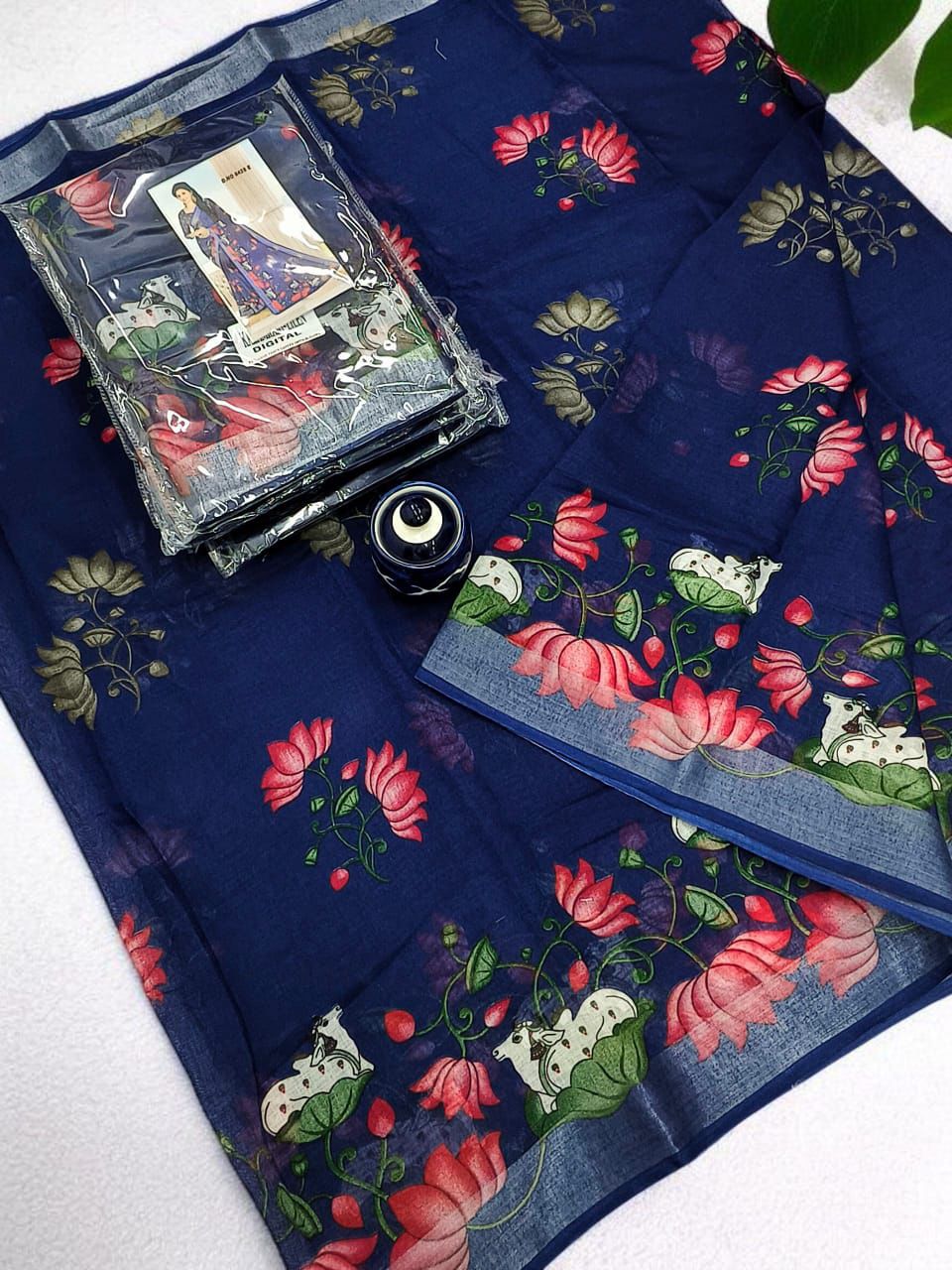 PREMIUM LINEN FLOWER DIGITAL PRINT SAREE