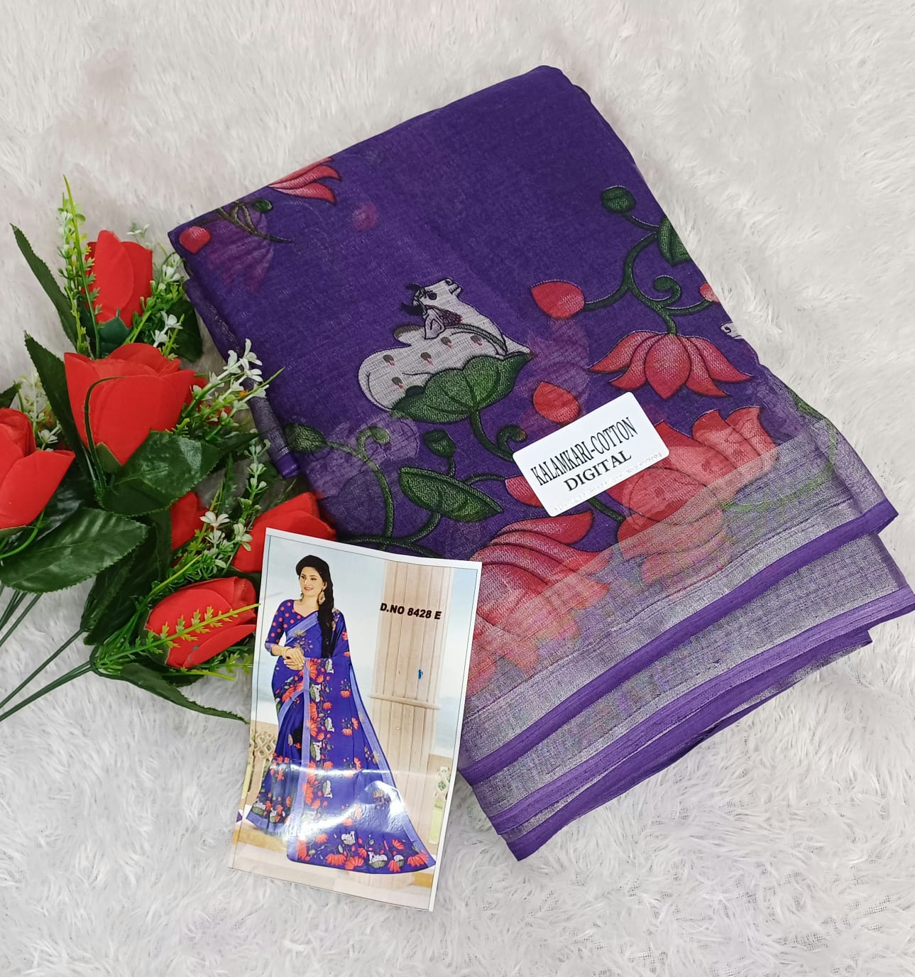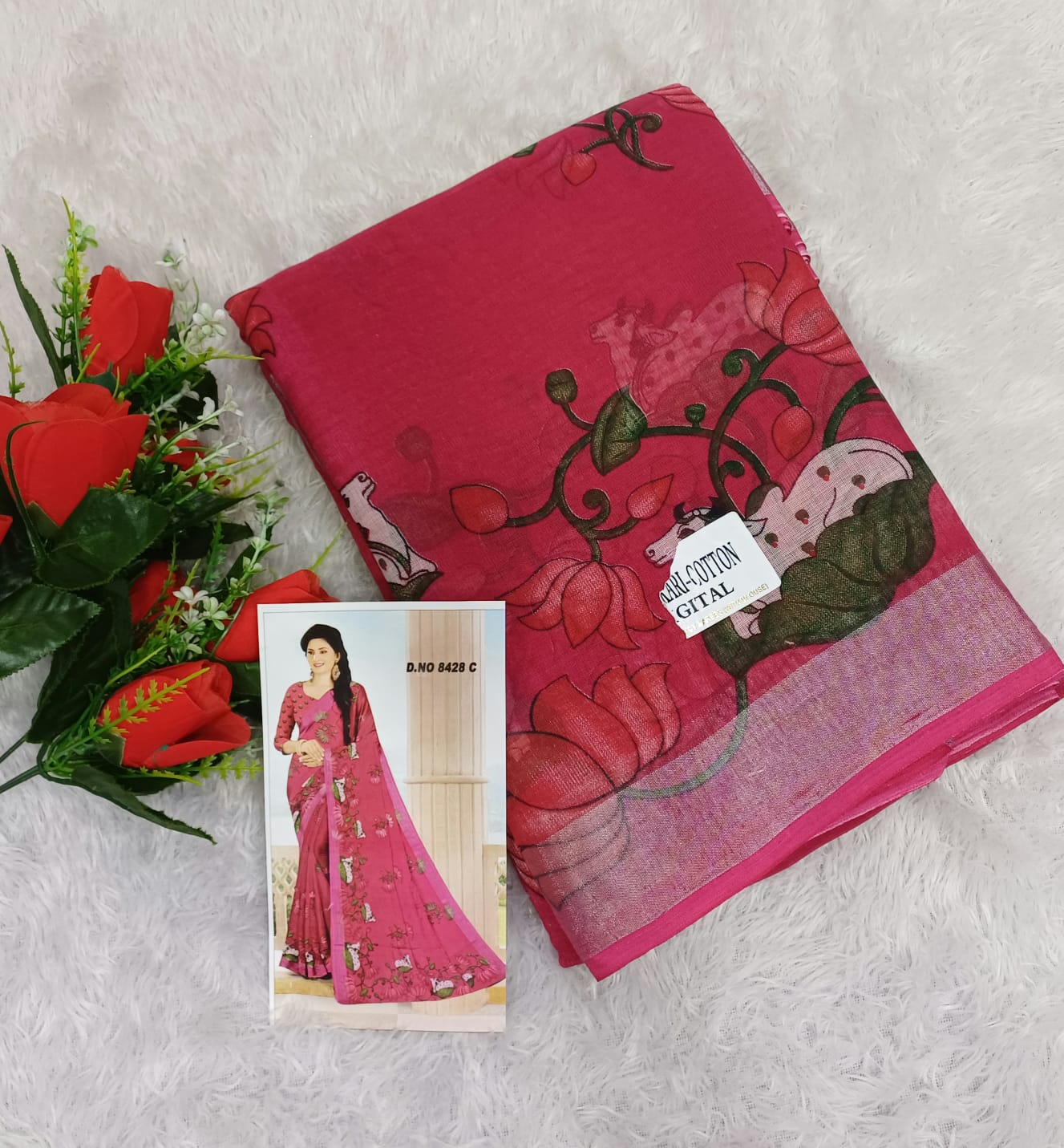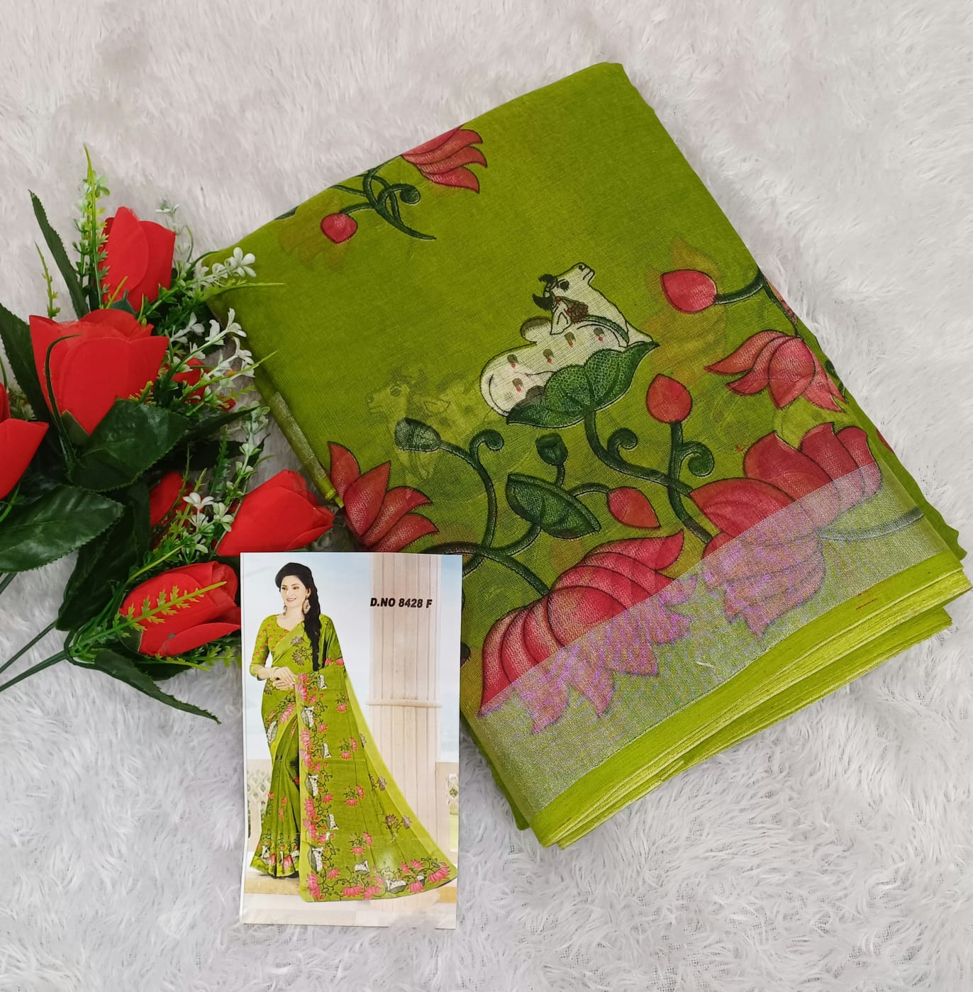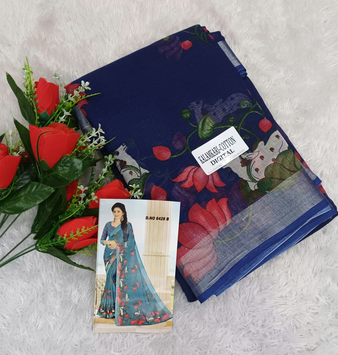 PREMIUM LINEN FLOWER DIGITAL PRINT SAREE