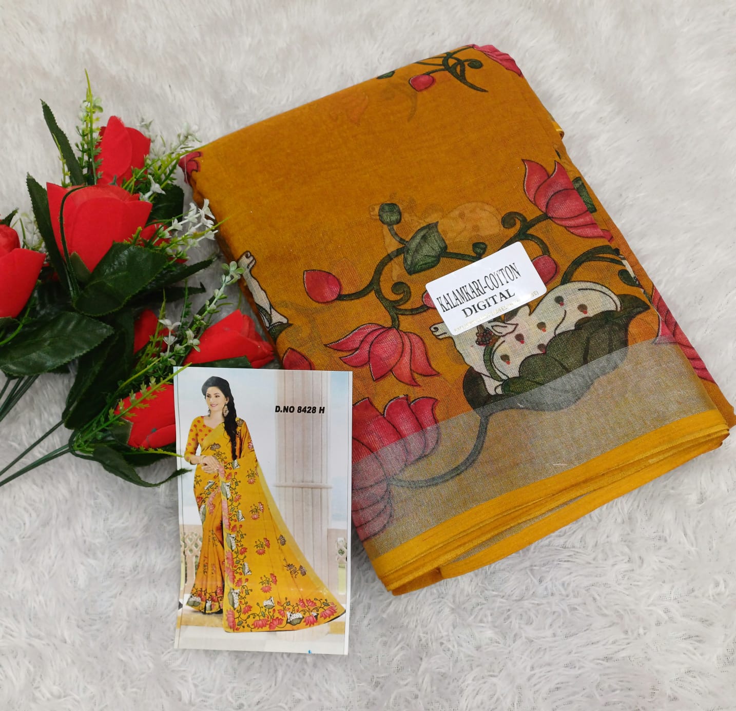 SEMI LINEN COTTON SAREE SUNFLOWER DESIGN