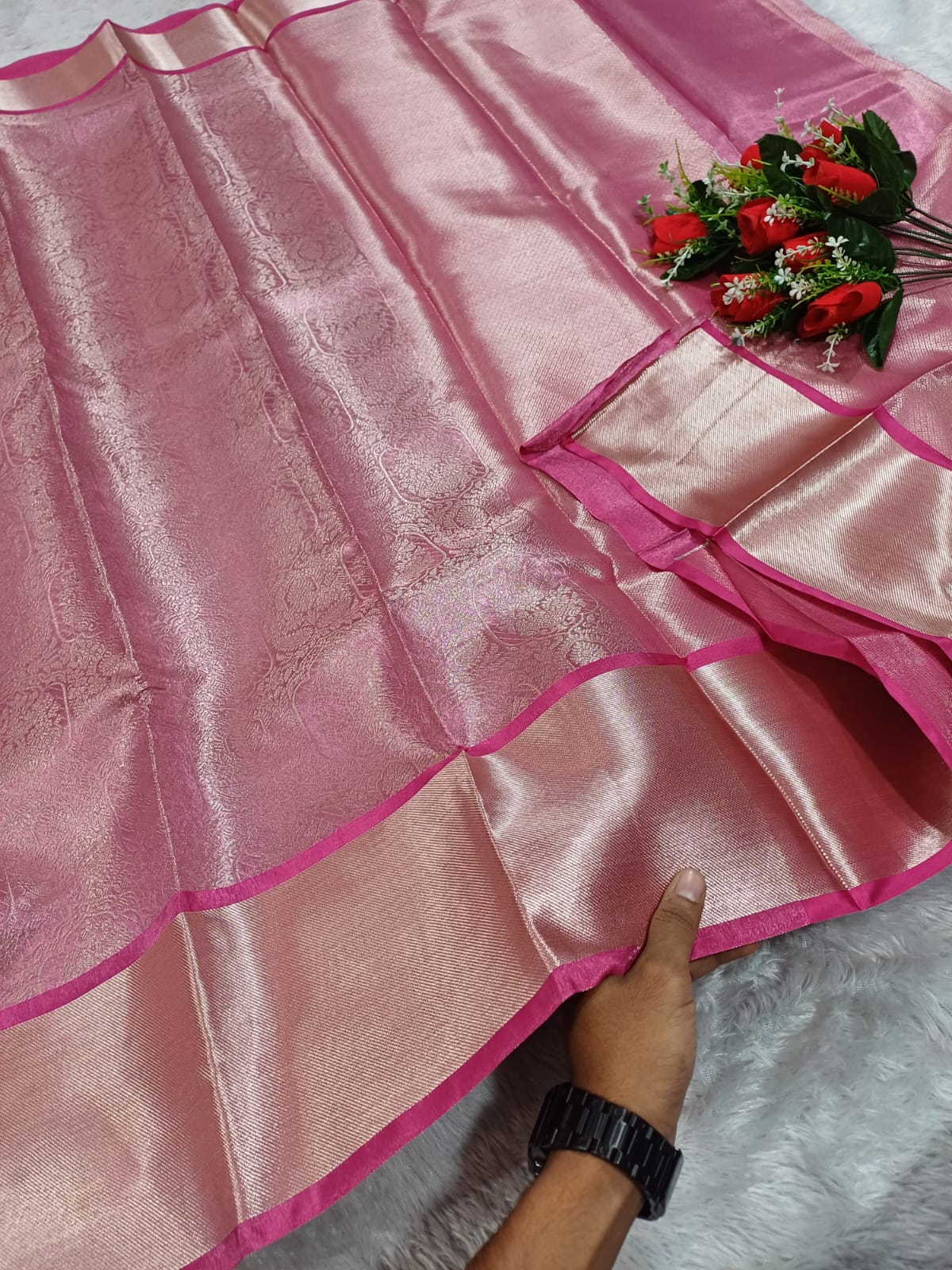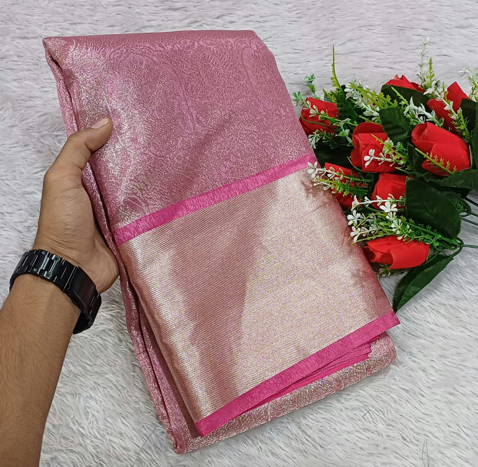 TISSU BANARASI PINK ZARI ALL OVER MOTIV BRIDEL SAREES