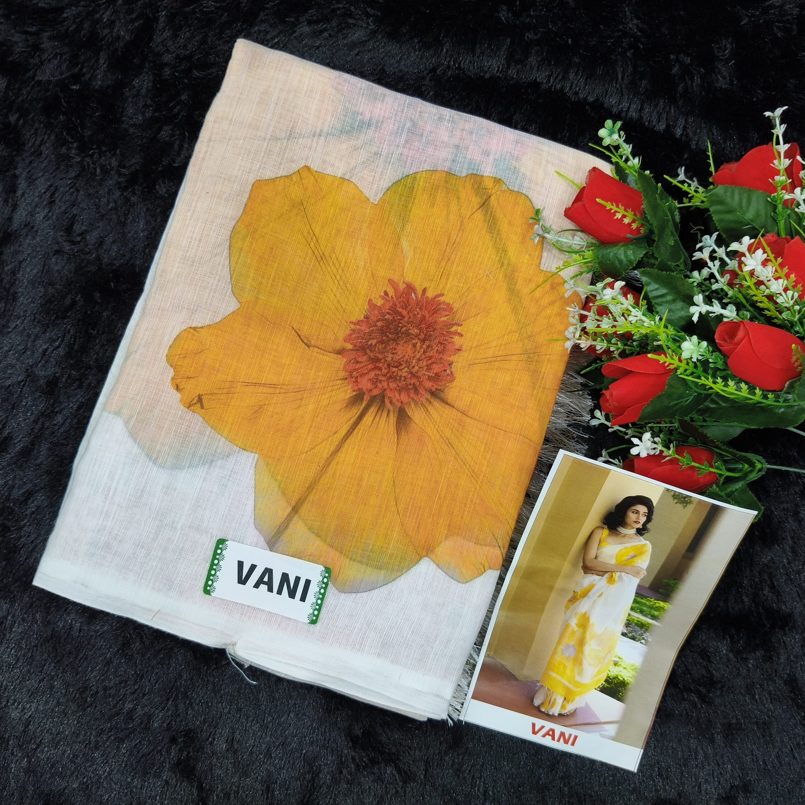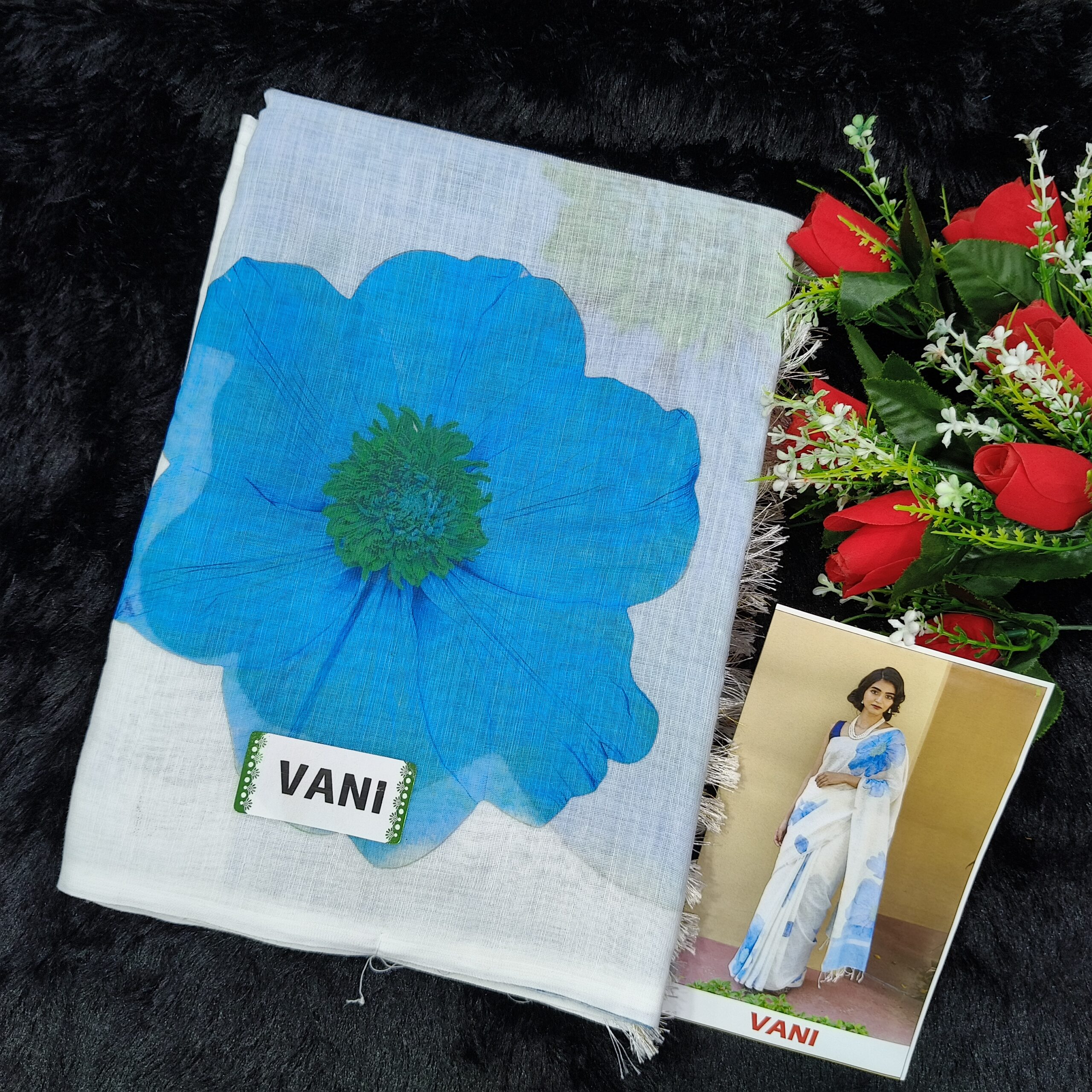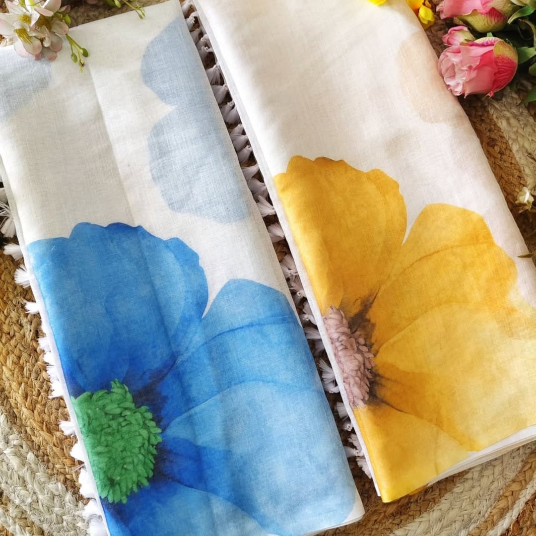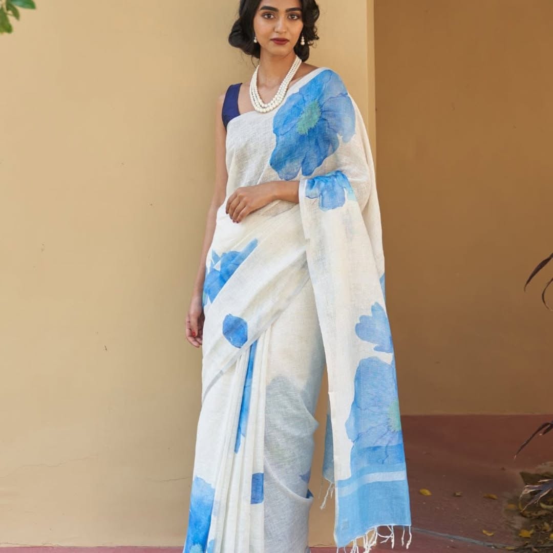 LINEN COTTON SAREE WITH BLOUSE & WHITE COLOUR COMBINATION