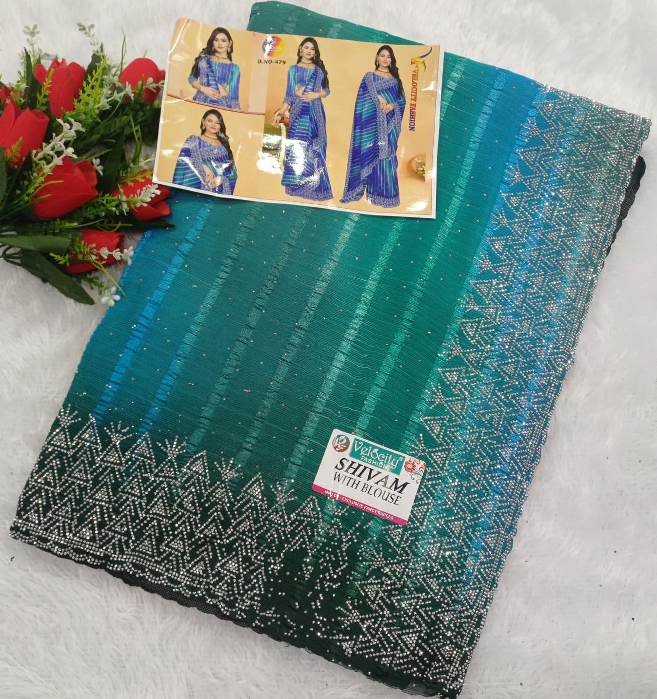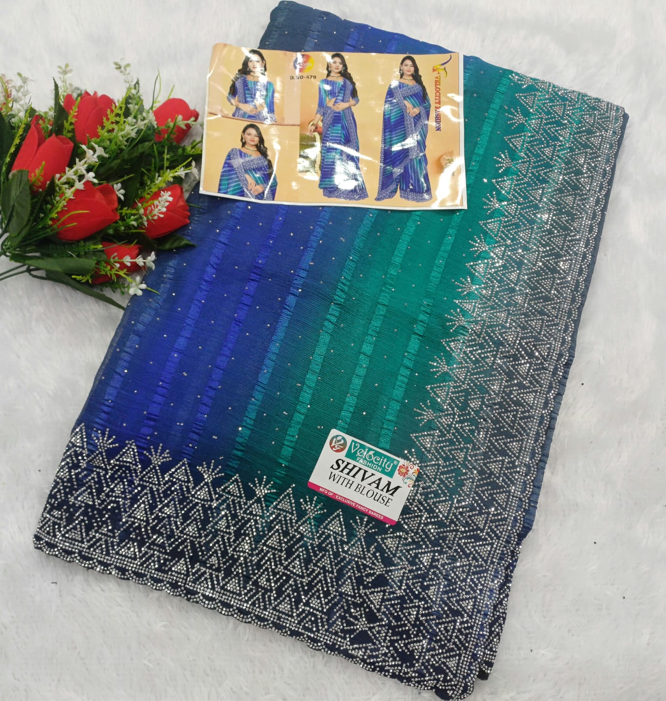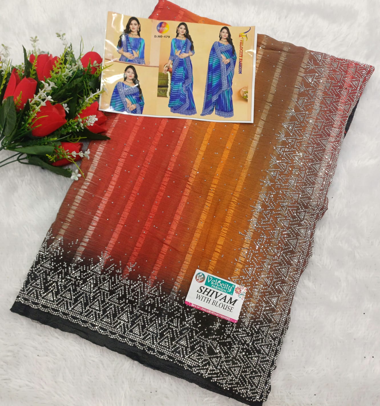 RAINBOW STONE WORK SAREE WITH BLOUSE