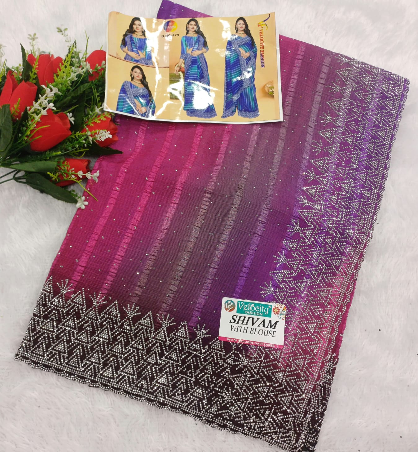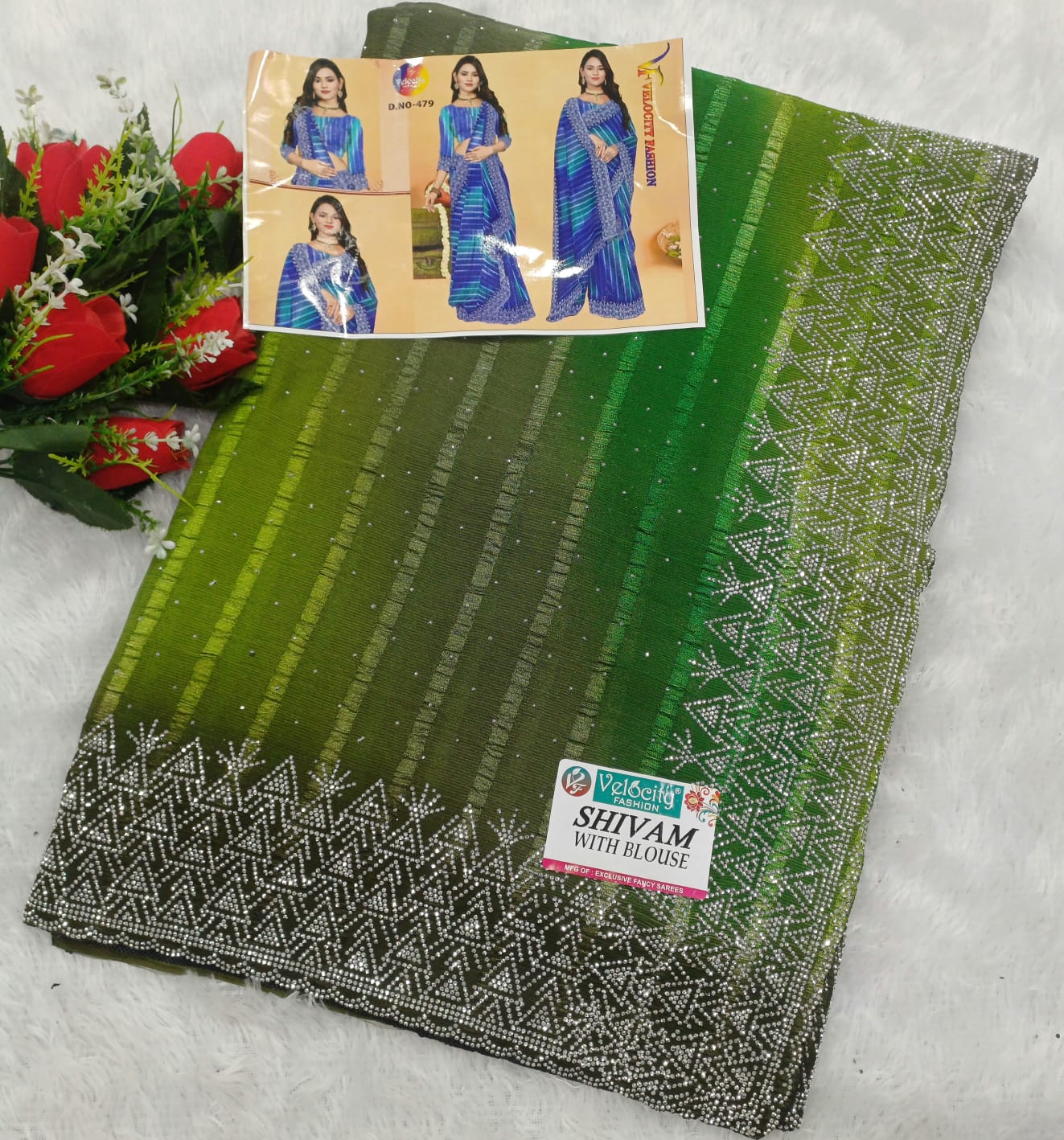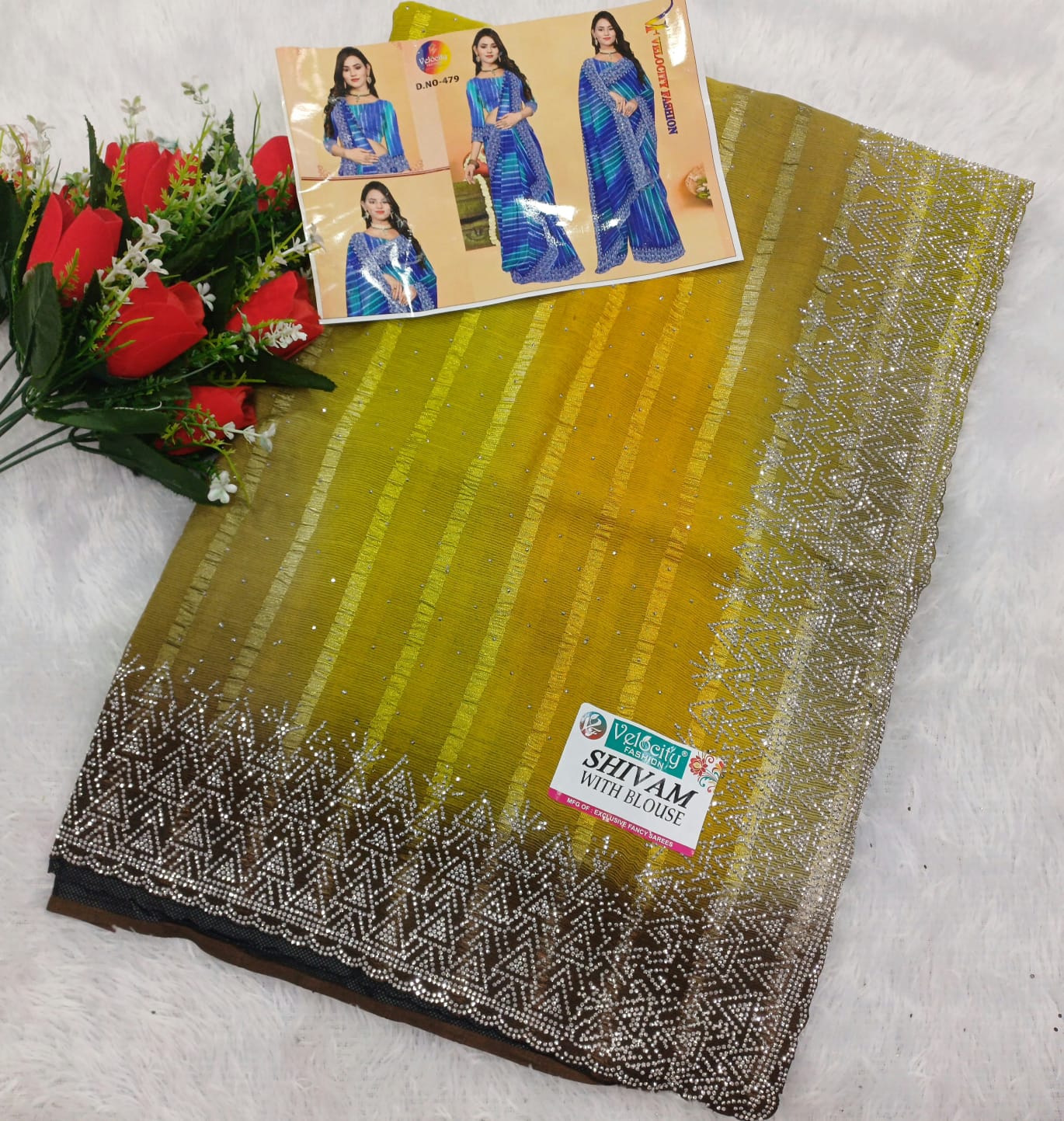 RAINBOW STONE WORK SAREE WITH BLOUSE