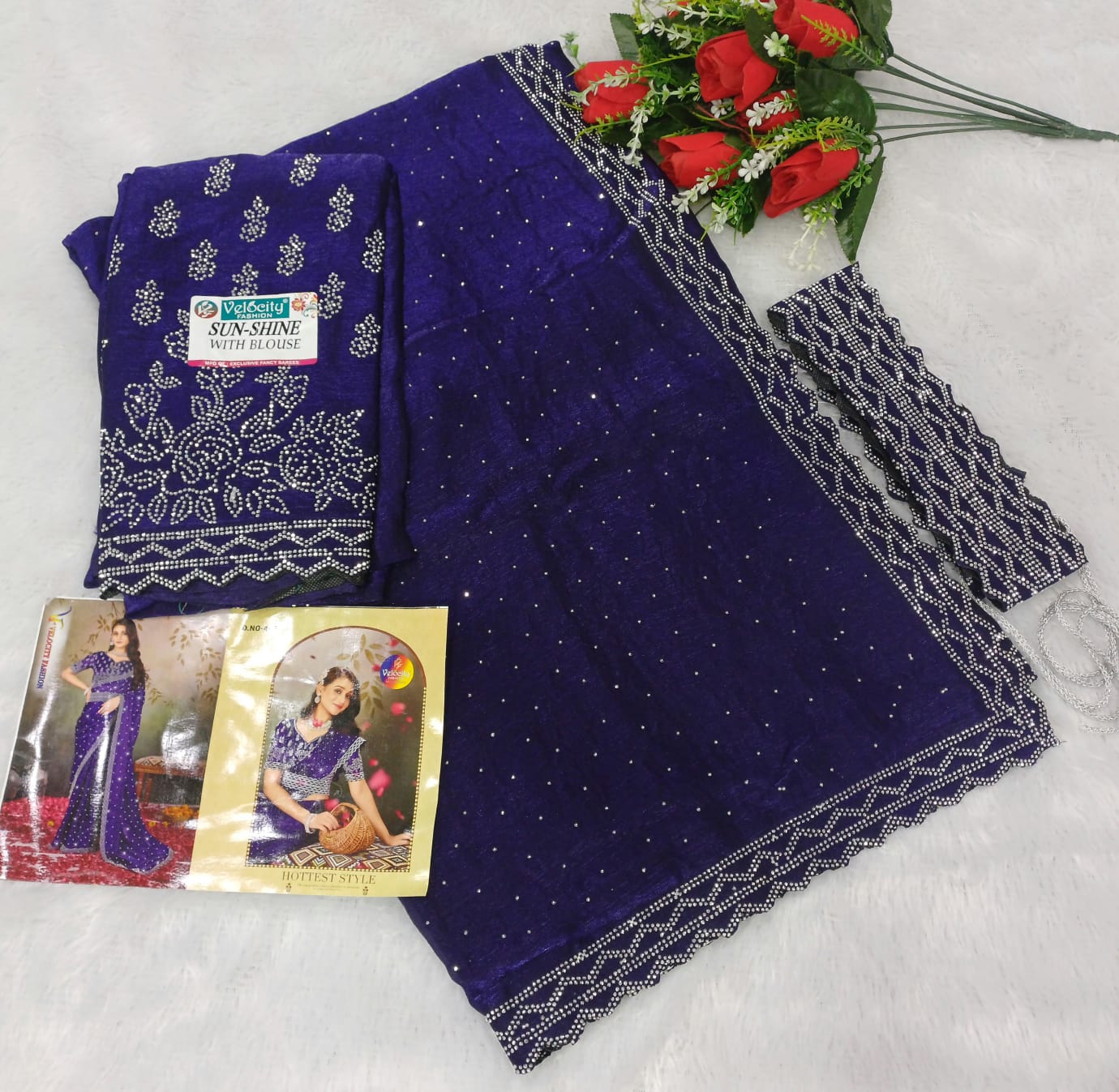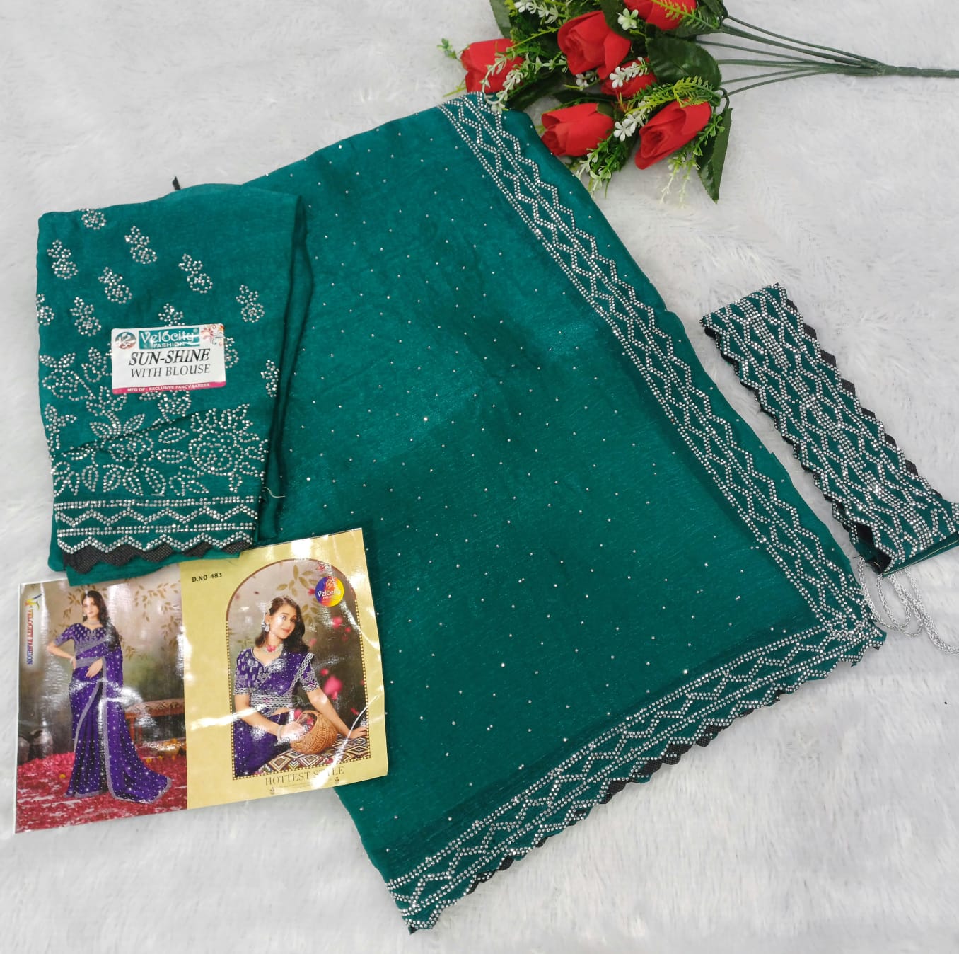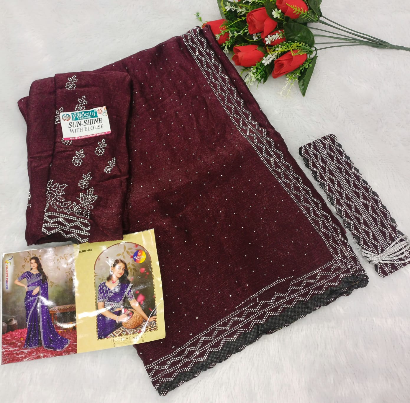 SPACE SILK HIP BELT SAREE & FULL SAREE SIROSKHI STONE WORK C PALLU & FULL WORKÂ BLOUSE