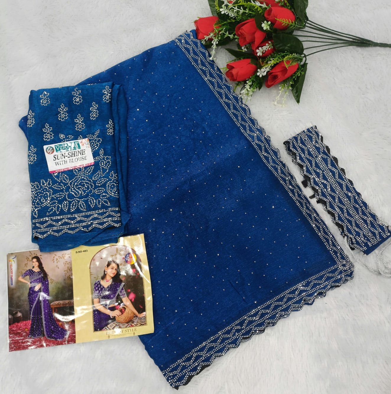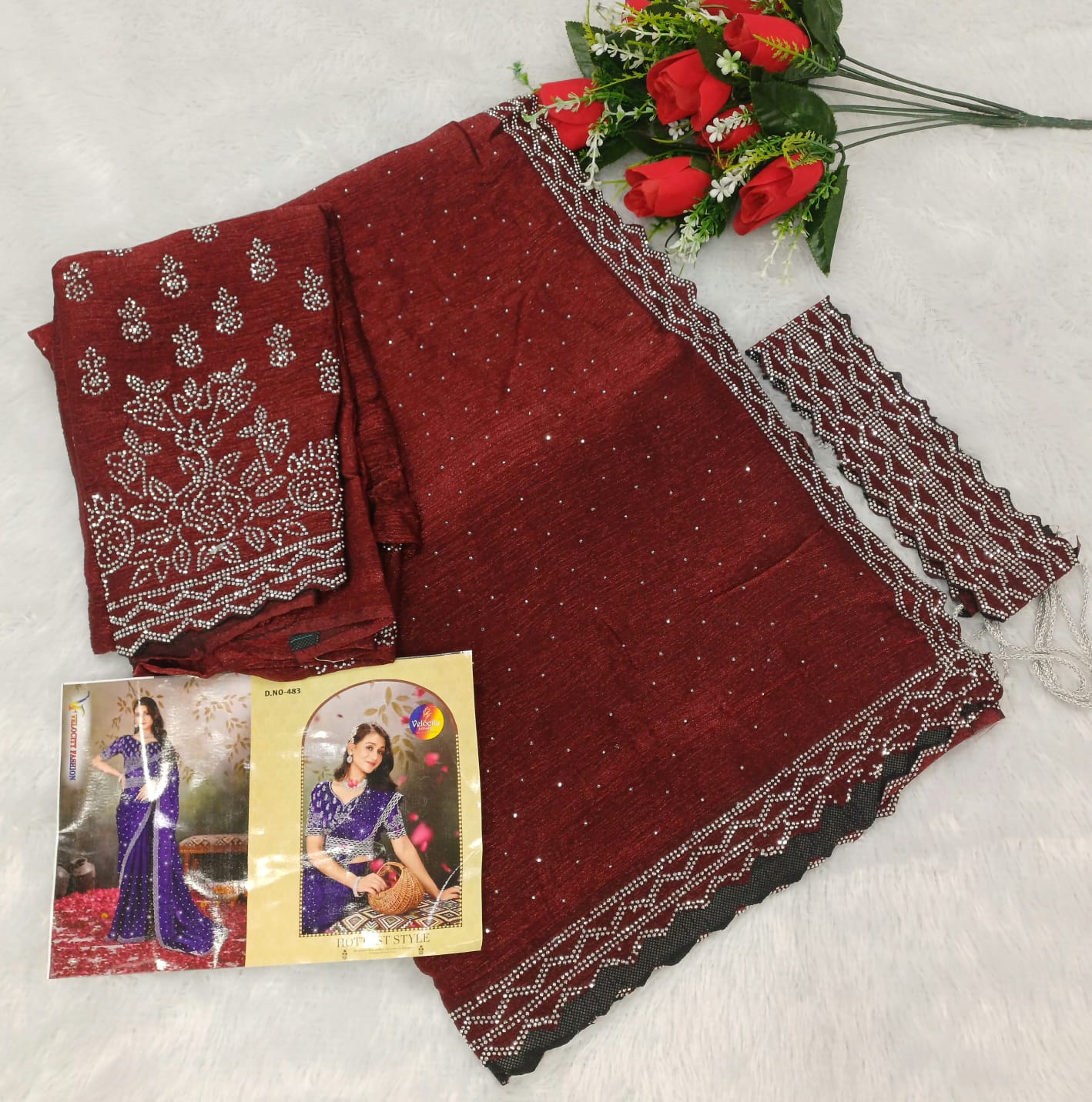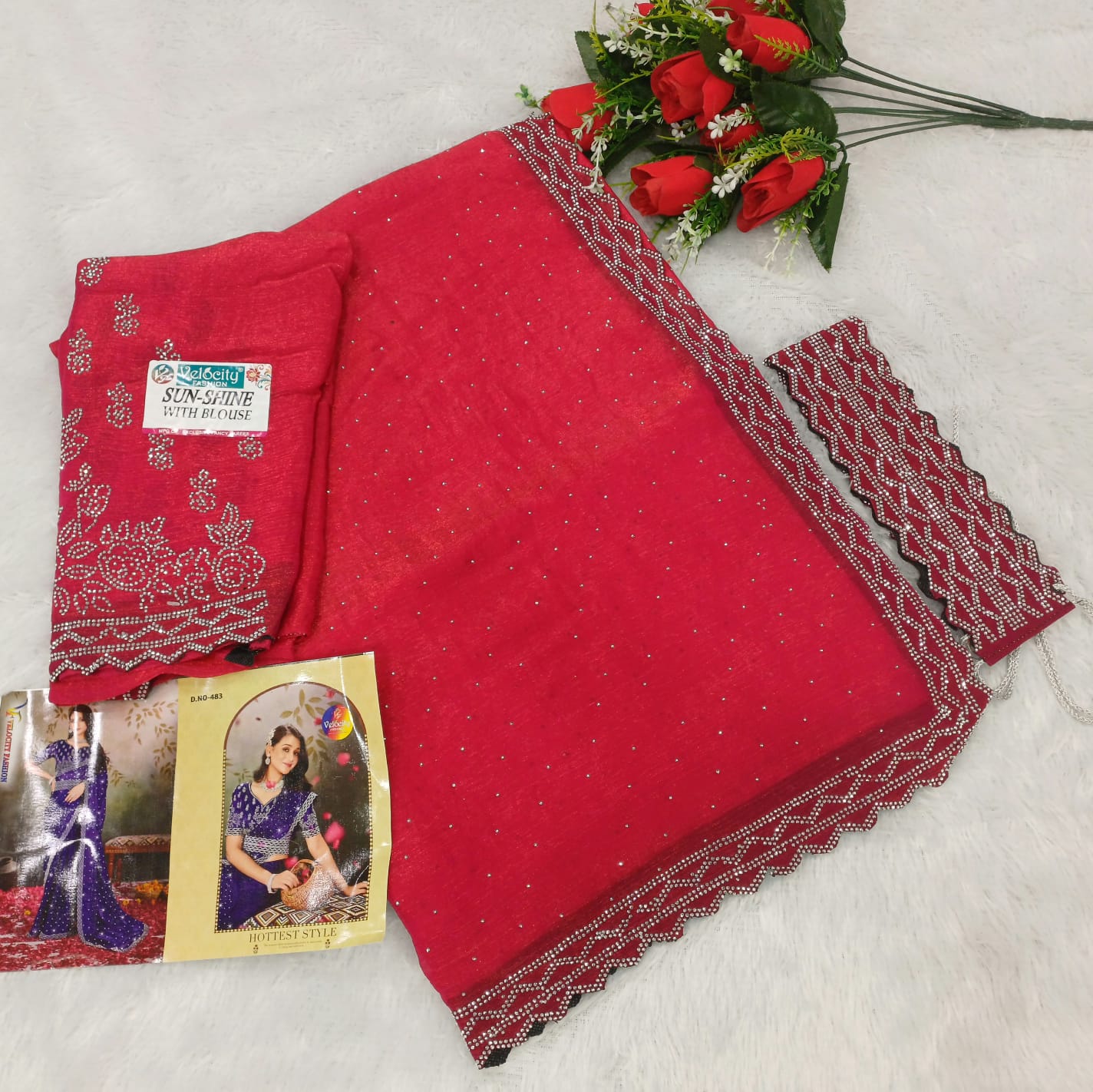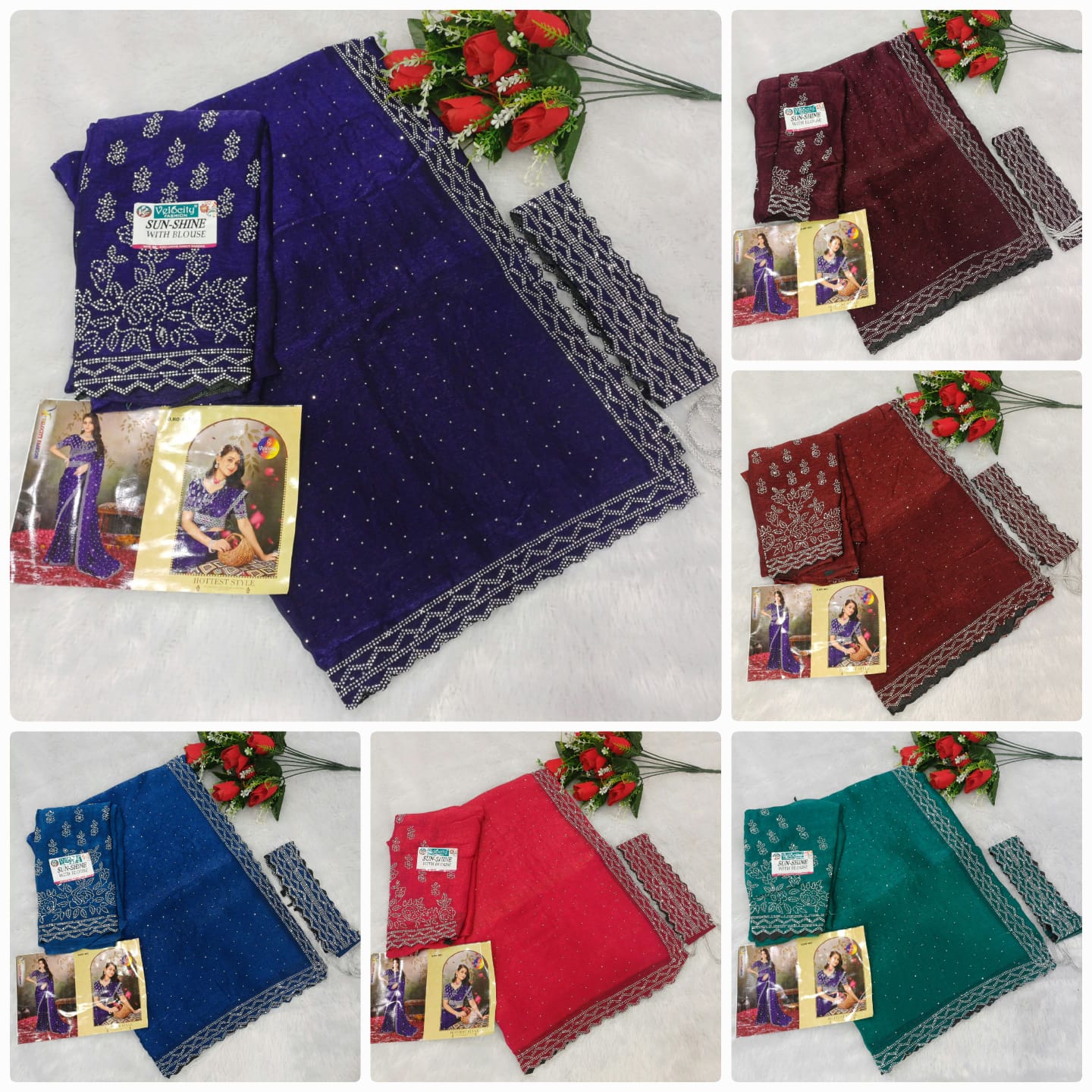 SPACE SILK HIP BELT SAREE & FULL SAREE SIROSKHI STONE WORK C PALLU & FULL WORKÂ BLOUSE